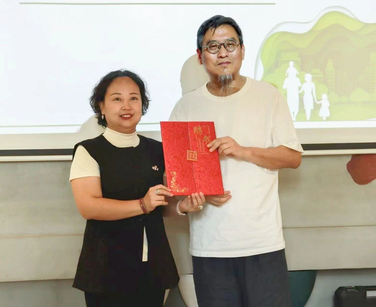 湖北新时代生态环境服务发展中心副主任周靖霞为刘从康、肖胜虎颁发特聘专家证书,肯定其在生态科普领域的持续贡献。