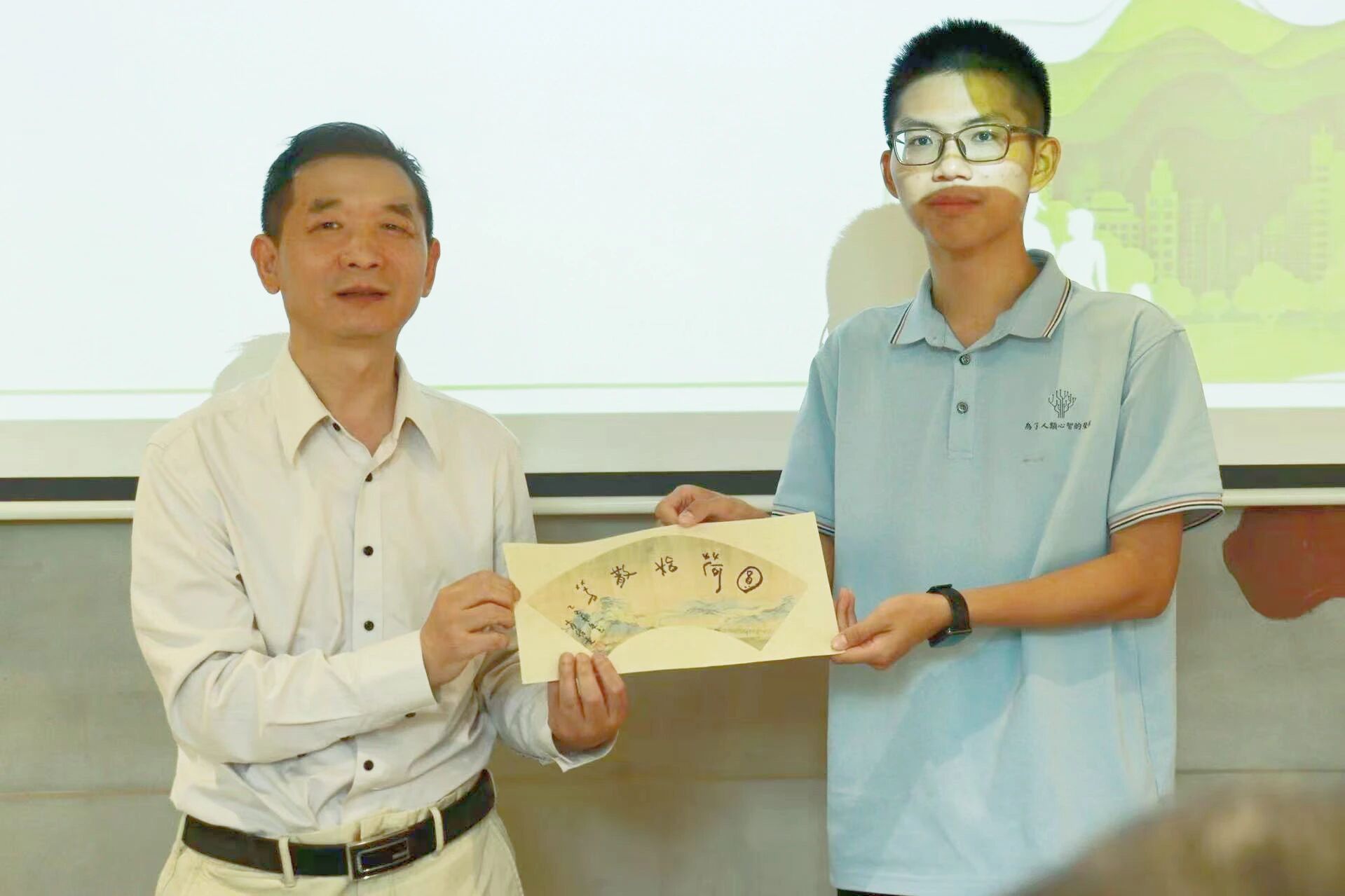 武汉市十佳创业导师肖胜虎向两名环境专业学生赠送亲笔题词的书法作品,勉励学子从专业出发践行环保。“减碳不是宏大口号,而是每个人书包里的再生纸、共享单车上的公里数。”肖胜虎结合大学生创新案例,提出“低碳生活+绿色创业”的双行动建议。