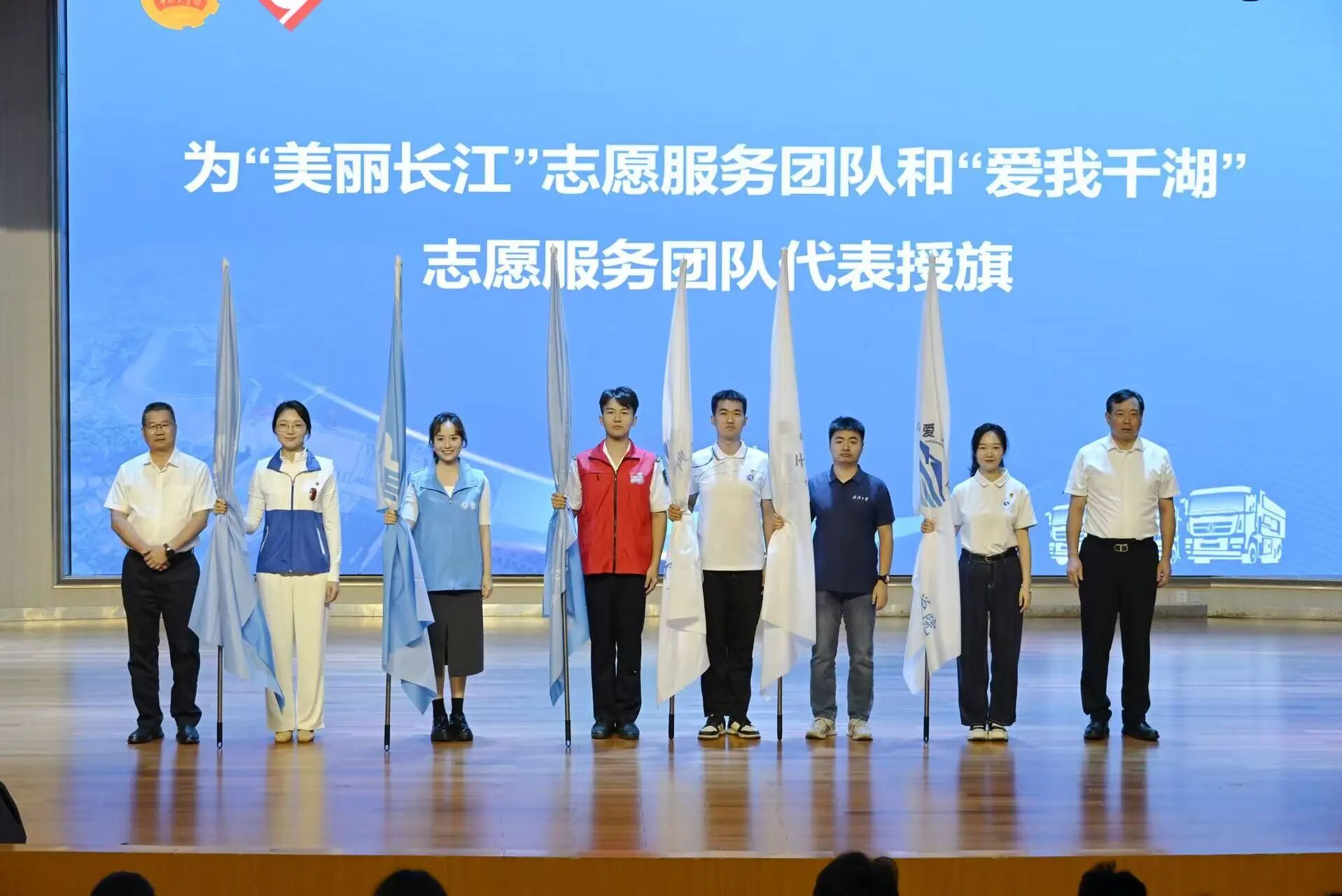 本次活动分为"南水情长""美丽长江""爱我千湖"三大篇章,全面展现湖北在水资源保护、长江大保护、湖泊治理方面的志愿力量。与会领导为优秀项目团队颁发证书,并为"美丽长江""爱我千湖"志愿服务队授旗,激励更多青年投身生态环保事业。
